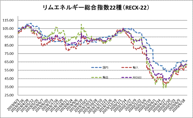 レックス22=反落、原油相場の下落を受け輸出入ジェット燃料が軟化