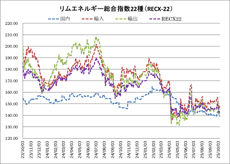8日のリムエネルギー総合指数22種(レックス22)は144.28と、前日に比べ0.17ポイント上昇した。 内訳は国内(9種)が139.05で同0.89ポイント下落。一方、輸入が149.02で同0.69ポイント上昇、輸出(4種)も144.77で同0.70ポイント上昇となっている。 国内は東西のガソリンと灯油が軟調。特に東京湾のガソリンは6.38ポイントの大幅下落となった。原油安による先安観から買い気が後退したことが原因。また東京湾のブタンとプロパンも売り圧力の台頭を受け、弱含んだ。 輸入指数は石油製品、ベンゼン、LNGが続伸した。特にLNGは同7.39ポイントと上げ幅を拡大。欧州天然ガス市況の上昇を受けた。一方、プロパンは同0.98ポイント、ブタンが同0.95ポイントの下落。日本国内の需給緩和感を受けた。 輸出指数はベンゼン、ジェットケロシン、軽油、380cst重油すべて上昇した。