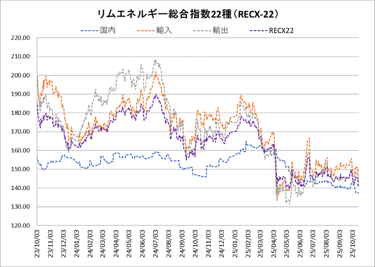 16日のリムエネルギー総合指数22種(レックス22)は140.67と、前日に比べ0.13ポイント上昇した。内訳は国内(9種)が137.55で前日比0.28ポイント、輸入(9種)が143.45と同0.37ポイントそれぞれ上昇した一方、輸出(4種)は141.02と同0.23ポイント下落した。 国内指数は上昇した。A重油1.0%Sは、京浜と阪神渡しで前日比0.94ポイント上昇した。ENEOSなどの主要な元売りが、仕切り価格を引き上げたことが影響した。 輸入指数も上昇した。プロパンが同0.96ポイント、ブタンは同3.21ポイントそれぞれ強含んだ。CP予想の引き上げや、買い気の堅調さを映した。 輸出指数は下落。ベンゼンは同0.58ポイント軟化した。原料コストの指標となる原油相場が、軟調に推移したことを受けた。