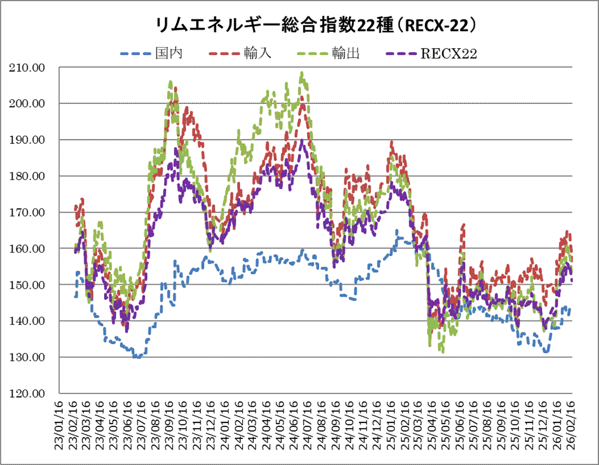 18日のリムエネルギー総合指数22種(レックス22)は151.15ポイントと、前日から0.12ポイント反発した。国内(9種)が同0.07ポイント反発し143.14ポイント、輸入(9種)が同0.07ポイント反発し156.53ポイント、輸出が同0.25ポイント続伸の153.79ポイントとなった。 国内指数は、出光興産の北海道事業所でのトラブルを受け、東日本の灯油と軽油が反発に転じた。二次装置のトラブルながら、同2油種の実需が堅調なエリアのトラブルとあって緊張感があるようだ。輸入指数はナフサ、ジェット、軽油など製品のほか、プロパン、ブタンなどガスも小幅反発。輸出指数は、全面的に小幅に上昇した。輸入、輸出指数はいずれも中国の旧正月により薄商い。前日の下げの反動など、小幅なレンジでもみ合いが続いている。
