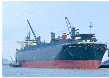 (バイオ燃料補給時の木材チップ専用船) 写真の出所:日本郵船 発表資料(6月30日発表)