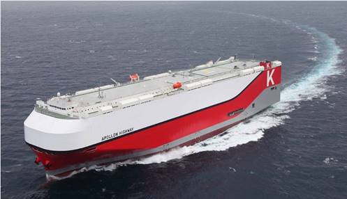 (自動車運搬船 APOLLON HIGHWAY、アポロンハイウェイ) 写真の出所: 川崎汽船 発表資料