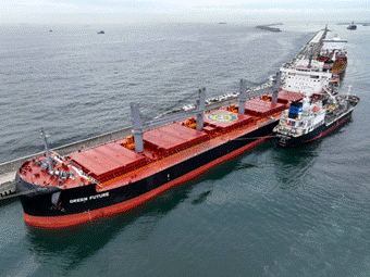 日本郵船は30日、グループ会社のNYKバルク・プロジェクトが神原汽船から定期傭船するメタノール二元燃料ばら積み船「Green Future」に対し、低炭素メタノールを船から船へ直接移送する「Ship to Ship(STS)方式」で韓国の蔚山港で28日に補給したと発表した。