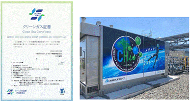 クリーンガス証書(左)、ひびきメタネーション実証設備(右)
