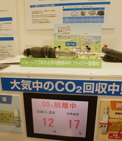 また、大阪ガスもMOFを活用し、e-methne(合成メタン)の製造に必要となる、CO2を大気などから回収するDAC(Direct Air Capture)技術を開発中だ。大量生産が可能なファイバー型としたMOFのCO2吸着材を米ジョージア工科大学と共同開発を進める。9月に千葉幕張メッセで行われた、「2025 スマートエネルギーウィーク【秋】」の大阪ガスブースでは、実際にDAC装置を稼働させ、CO2回収の様子を展示した。