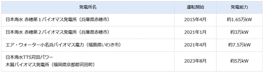エア・ウォーターは兵庫県赤穂市、福島県いわき市、福岡県京都郡にバイオマス発電所を保有しており、今後も自社グループのバイオマス発電所の環境価値を活用していく方針だ。