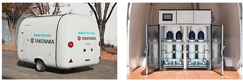 牽引式水素発電装置(写真左)と 水素吸蔵合金タンクシステム(写真右)