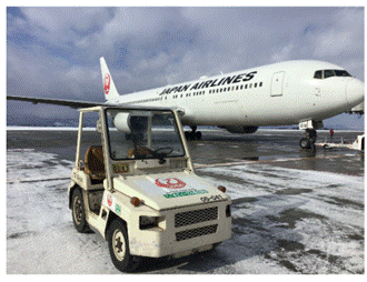 B100燃料が使用されるトーイングトラクター 写真の出所 日本航空 発表資料