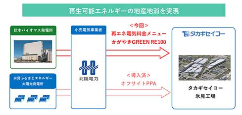 タカギセイコー氷見工場への再エネ電力供給図 図版の出所 東京ガス 発表資料