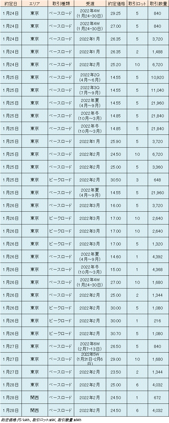 1月24~28日のJEPXの先渡市場では、約定がなかった。