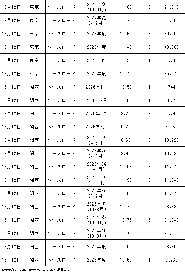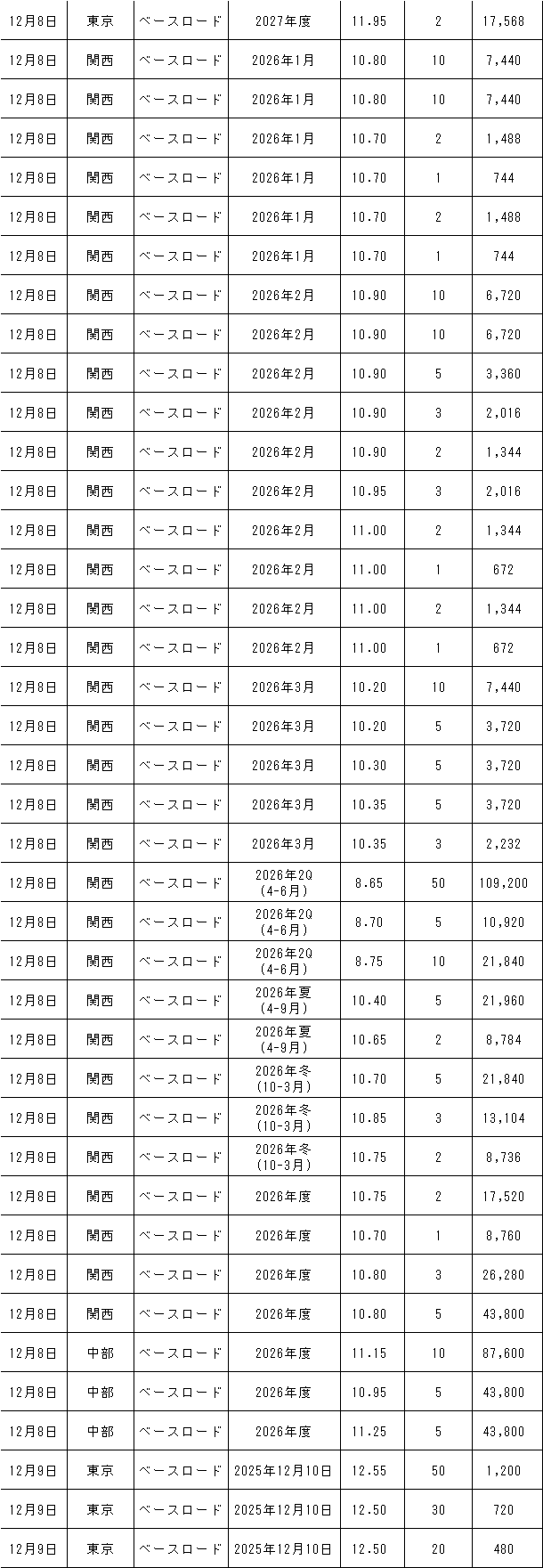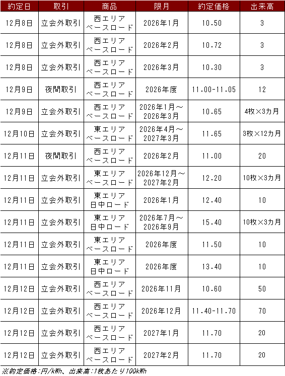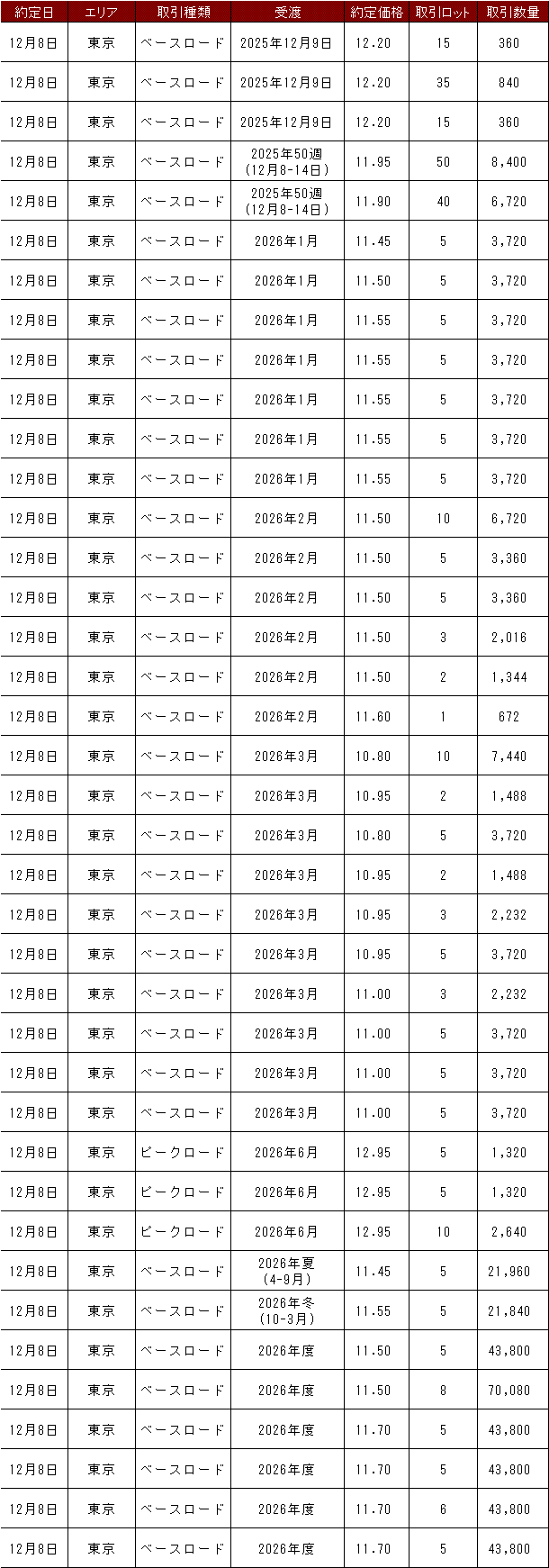 電力=12月8~12日:電力スポットは総じて小動き、地震の影響で北海道は急伸