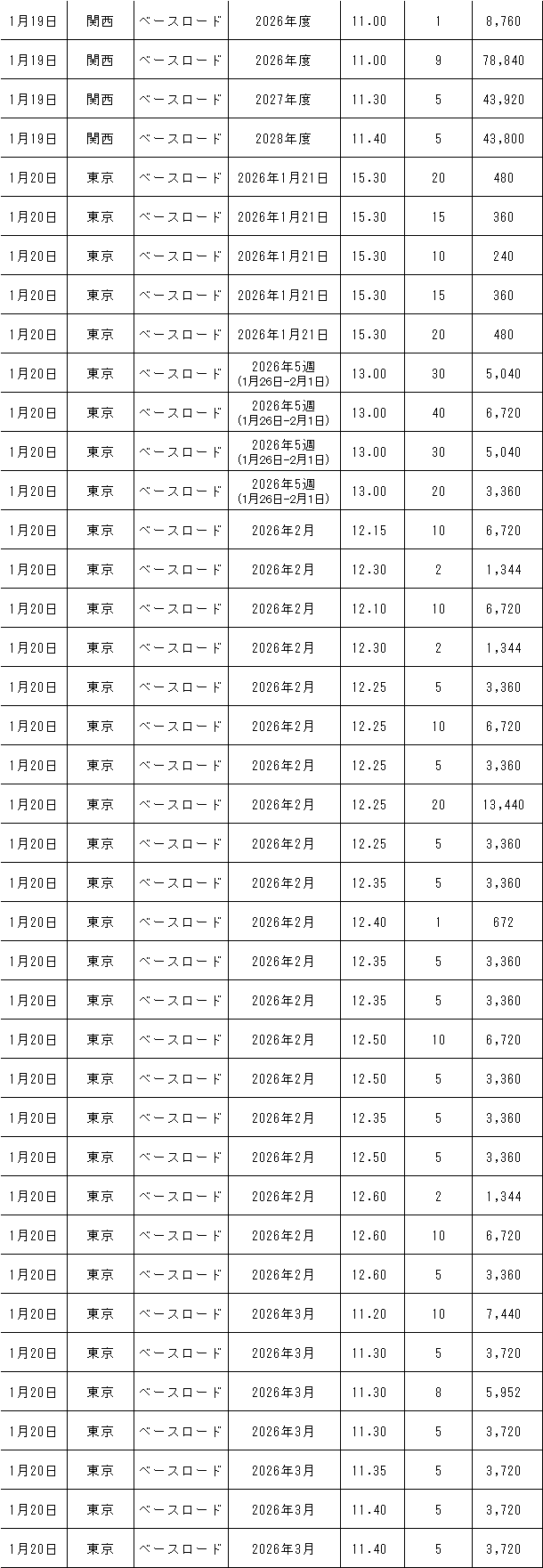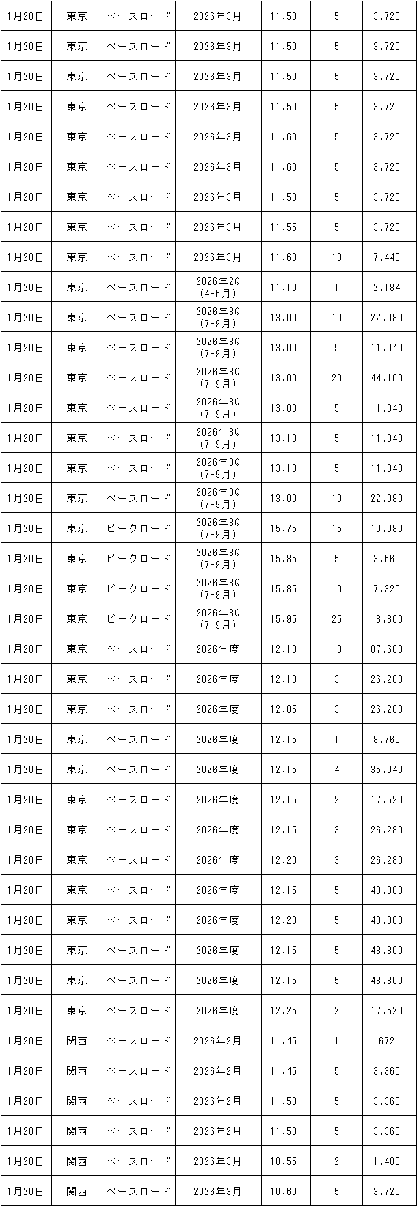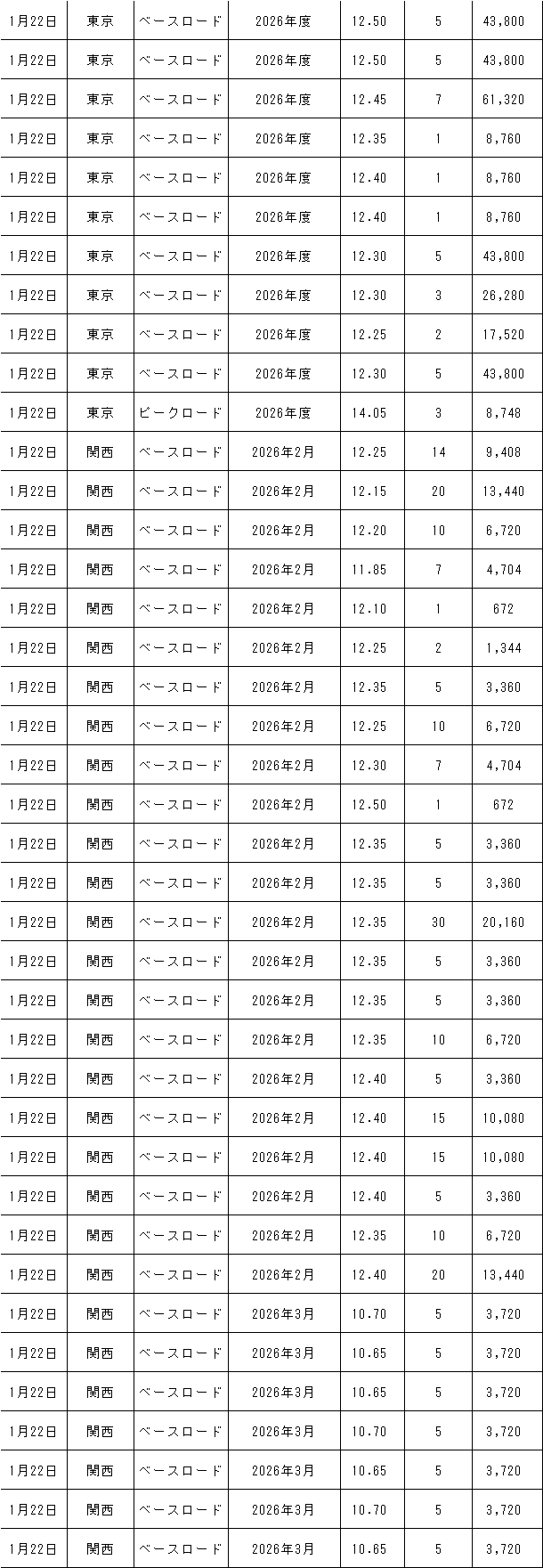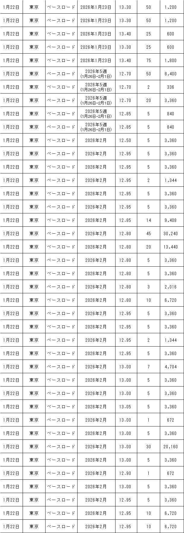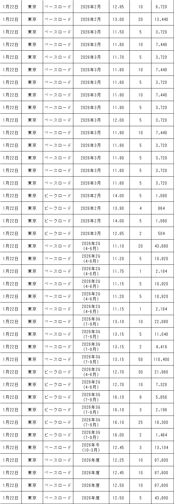 1月19~23日の東京商品取引所(TOCOM)の約定結果は下記表のとおり。