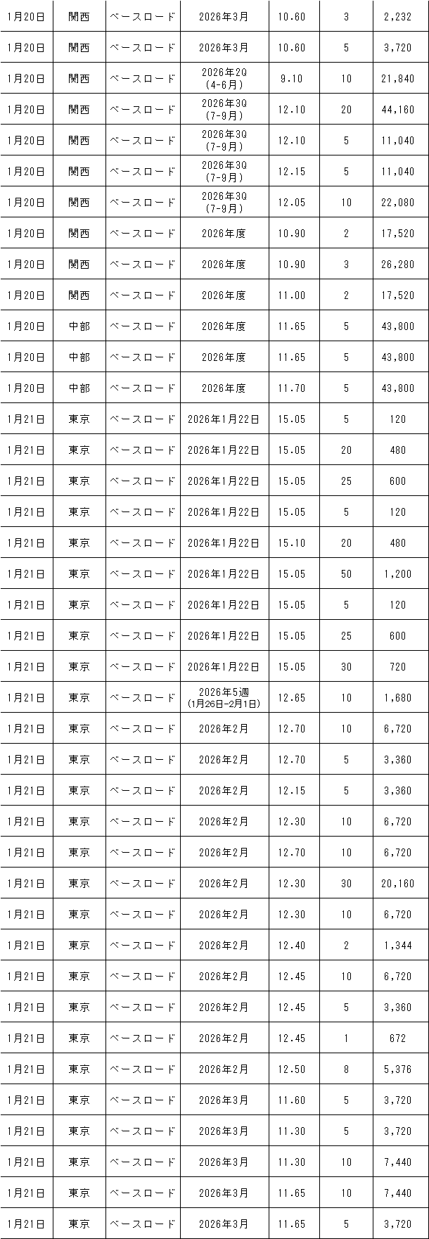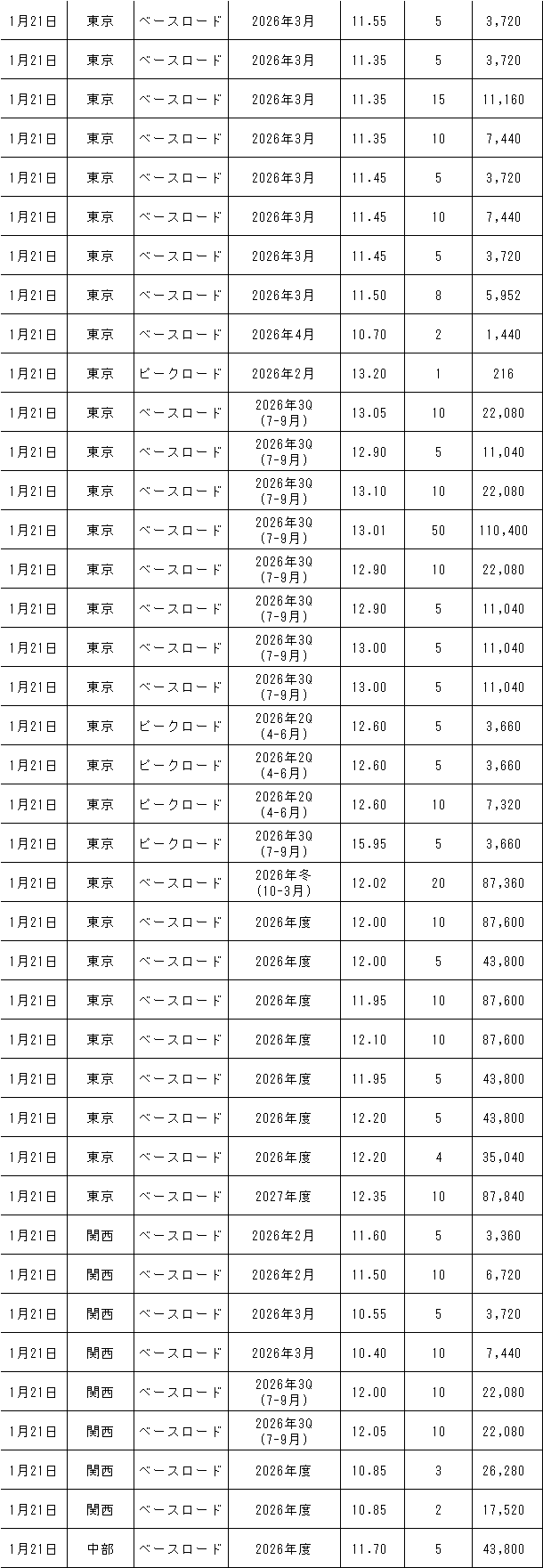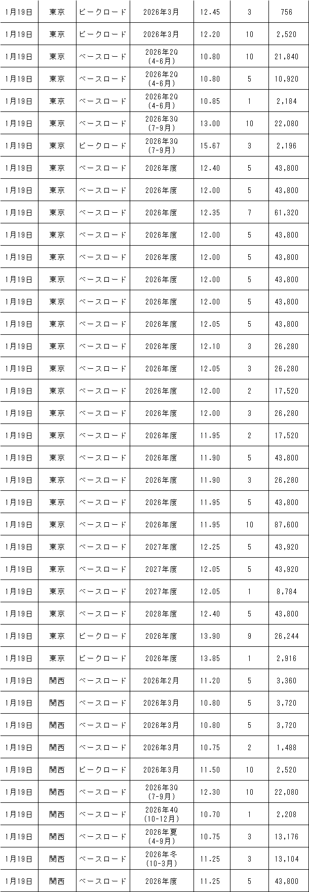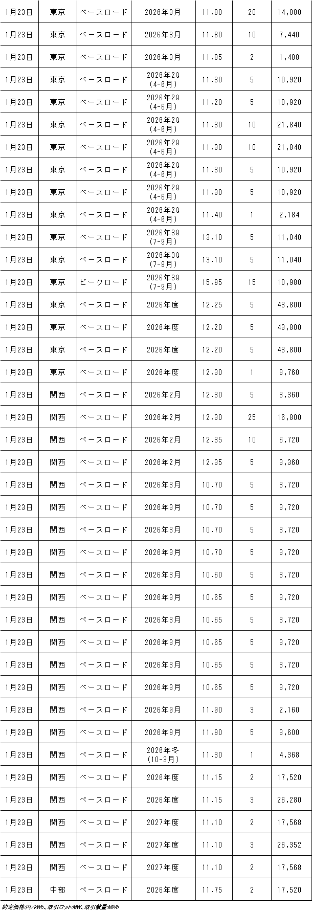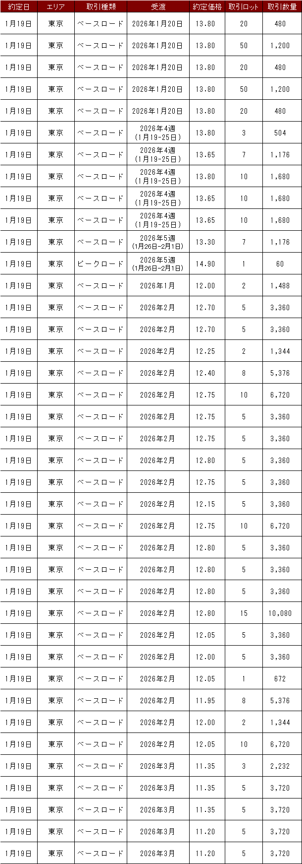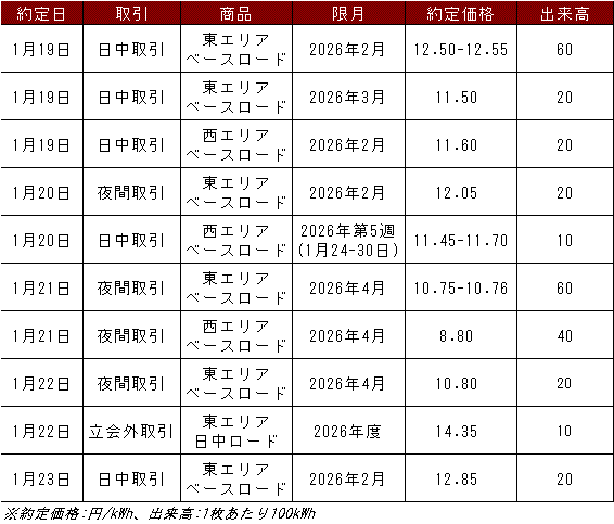 1月19~23日の欧州エネルギー取引所(EEX)の約定結果は下記表のとおり。