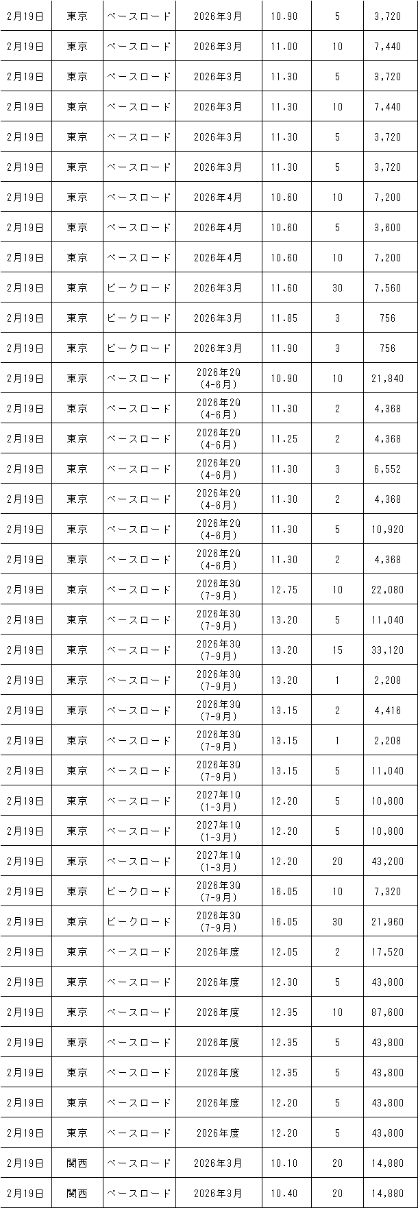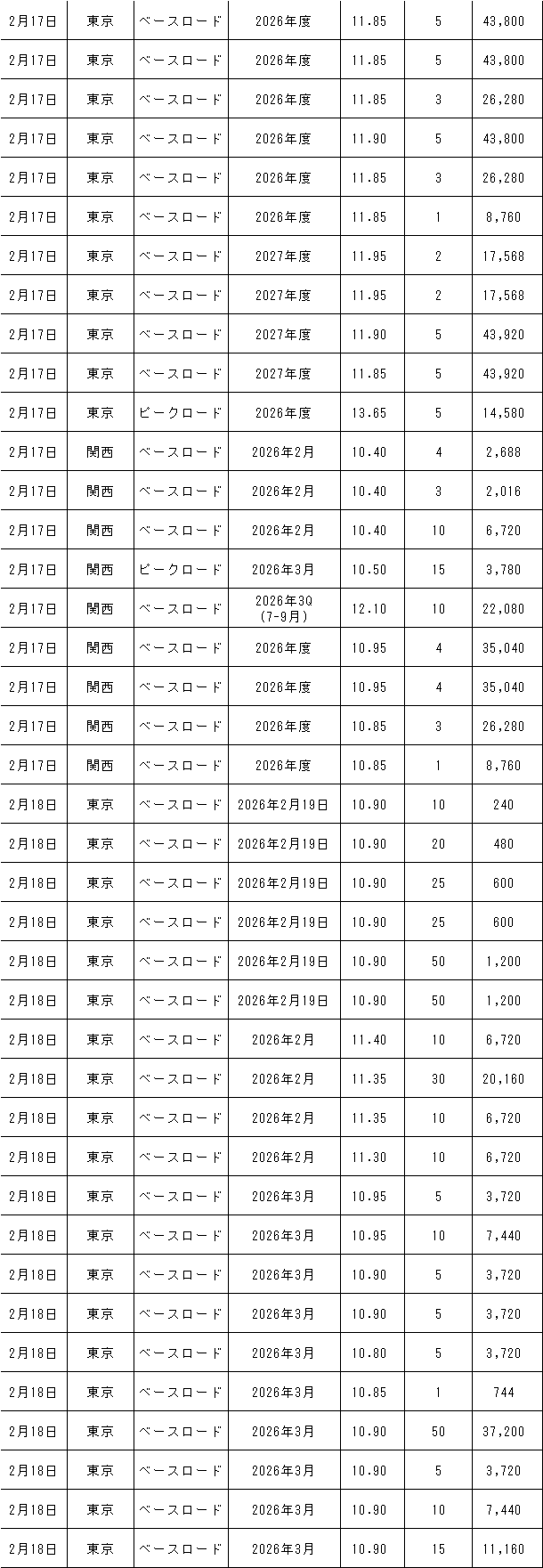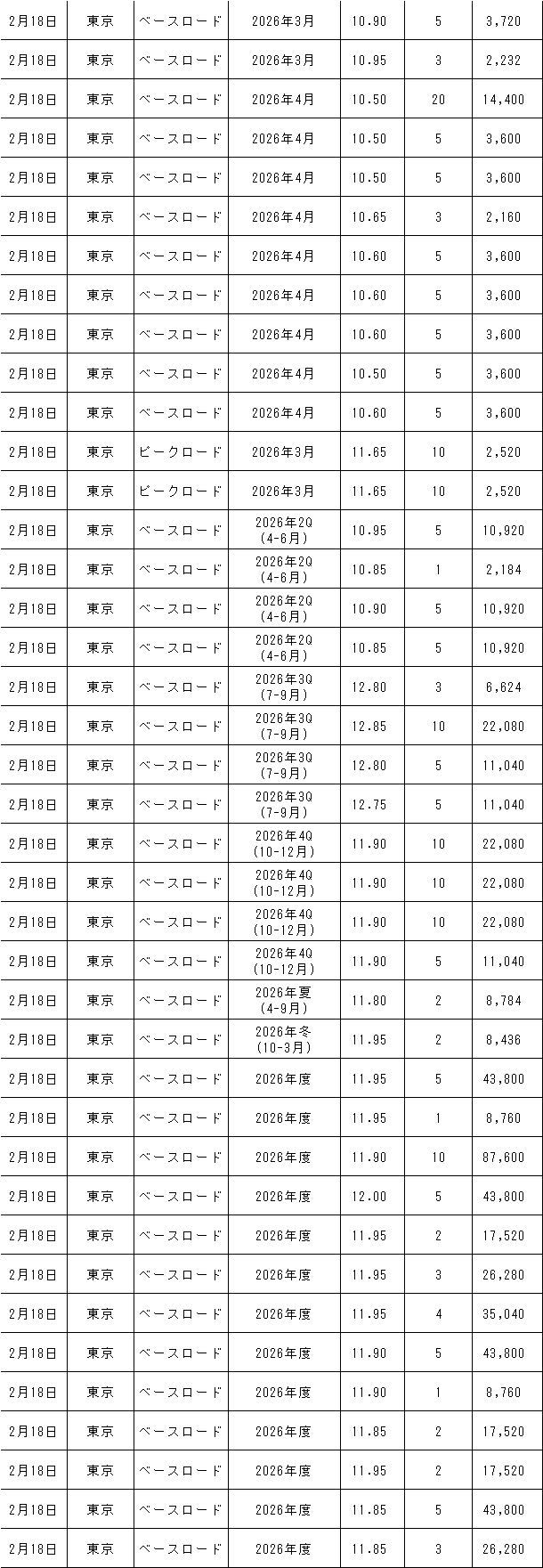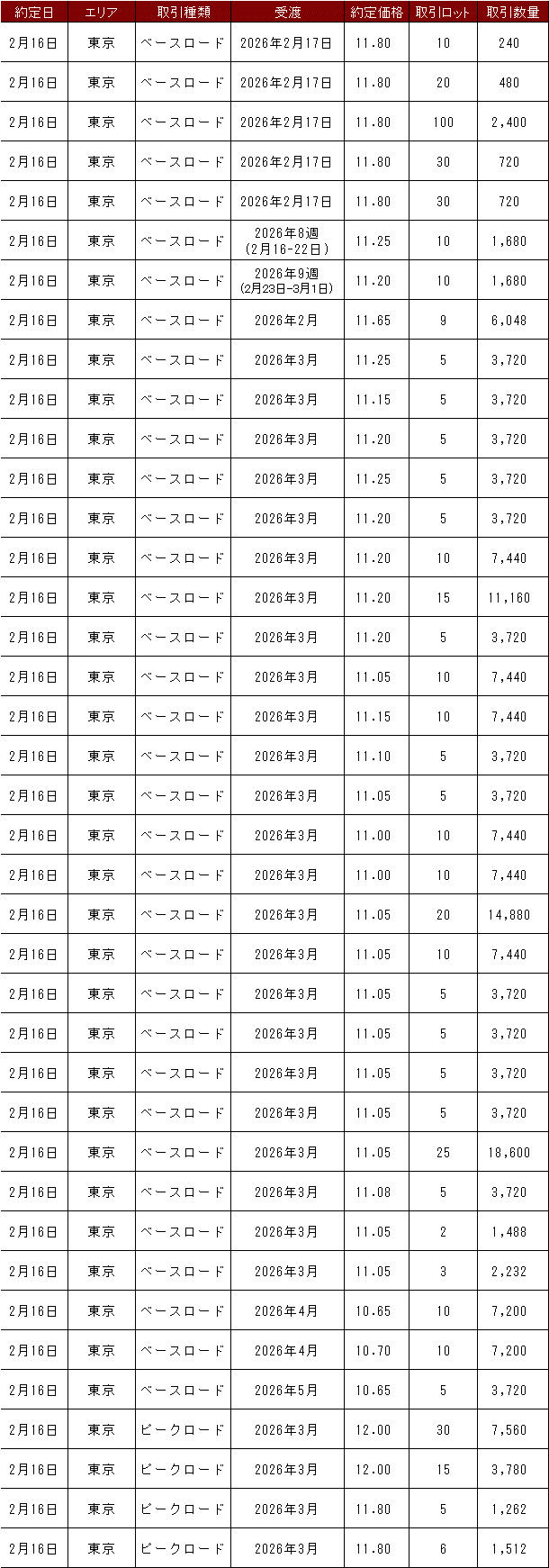 2月16~20日の東京商品取引所(TOCOM)の約定結果は下記表のとおり。